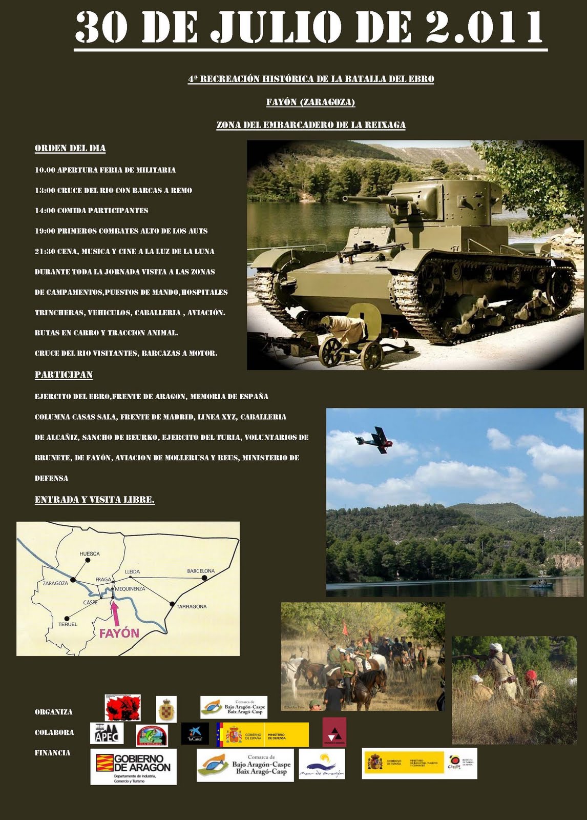 El día 30 de julio, en Fayón, volveremos a recrear el cruce del Ebro por el Ejército Popular Repúblicano y algunos de los combates que lo sucedieron, en la llamada Batalla del Ebro, la más larga y dura de la Guerra Civil Española. Es el quinto año que se celebra, si no me equivoco, y el año pasado el grueso del grupo de recreacionistas de FdM fue de tropas moras, como podéis ver en la foto. Gille es el que está tumbado sobre las cadenas del tanque. Aquí hay unas fotos del año pasado, para quien no se haga a la idea de qué es esto.